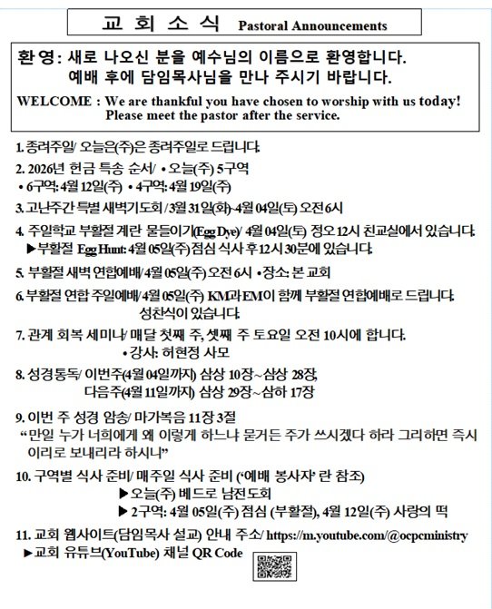 3/29/2026 교회 소식